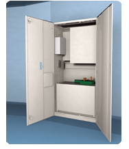 Για τα υδραυλικά ασανσέρ προτείνεται επίσης η λύση ενός compact μηχανοστασίου. Πρόκειται για ένα καλαίσθητο, μεταλλικό ερμάριο (ντουλάπα) που ενσωματώνει τη μονάδα ισχύος και τον πίνακα ελέγχου. Είναι πιστοποιημένο προϊόν και εναρμονίζεται απόλυτα με το Πρότυπο για τα Υδραυλικά Ασανσέρ EN 81.2.