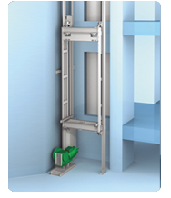 Η μηχανή τοποθετείται σε ειδική βάση εντός του φρεατίου και ο πίνακας ελέγχου σε μεταλλικό ερμάριο δίπλα από τη θύρα του τελευταίου ορόφου προσφέροντας έτσι την ιδανική πιστοποιημένη λύση για περιπτώσεις όπου δεν μπορεί να υπάρξει μηχανοστάσιο πάνω από το φρεάτιο.